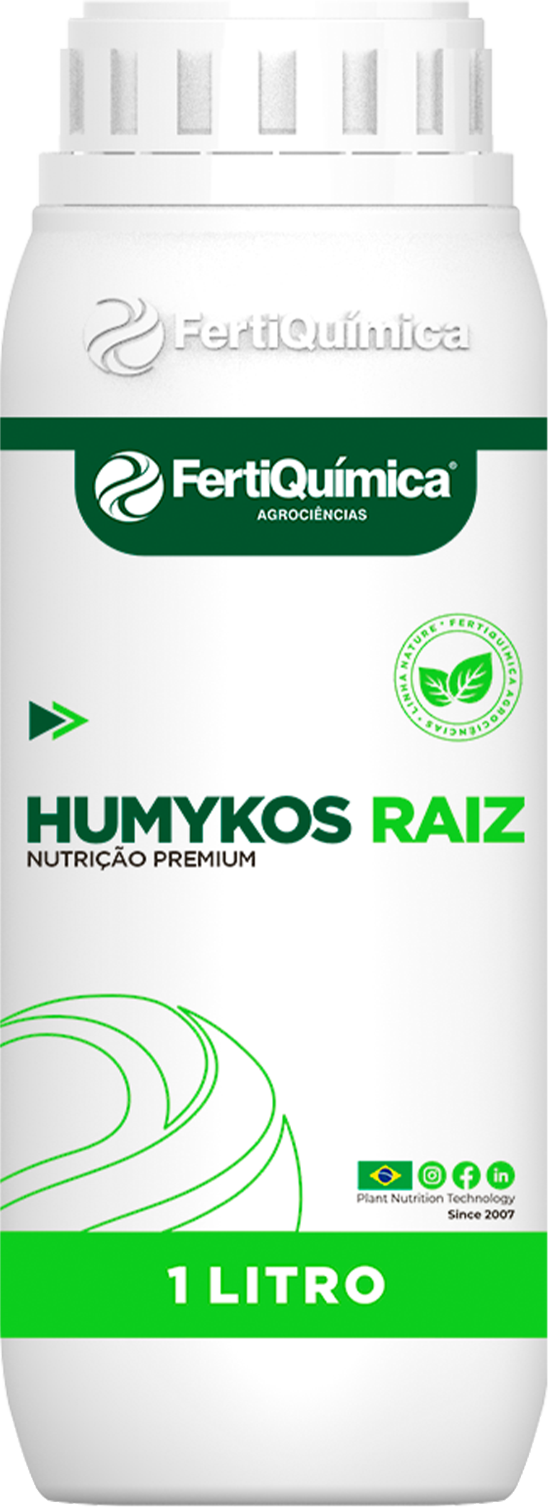 Sal de potássio húmico de alta pureza que condiciona o solo, estimula raízes e microbiota, e aumenta retenção de água e nutrientes.